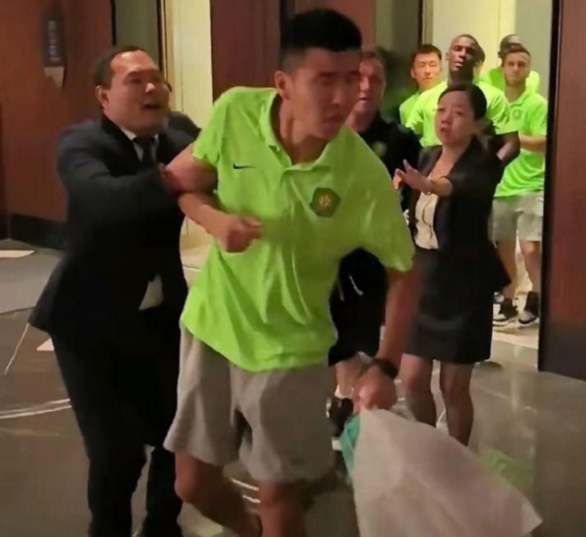 由于无法忍受球迷的质疑,王刚情绪失控,冲出电梯,怒怼球迷:“我们不想踢好吗?我们怎么不想踢好?”张玉宁紧跟其后,也对着球迷反问:“你有什么好哔哔的!”